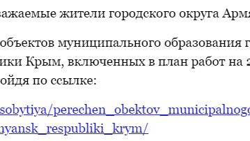 С перечнем объектов муниципального образования городской округ Армянск Республики Крым, включенных в план работ на 2020 год, вы можете ознакомиться, пройдя по ссылке: http://armgov.ru/sobytiya/perechen_obektov_municipalnogo_obrazovaniya_gorodskoj_okrug_armyansk_respubliki_krym/