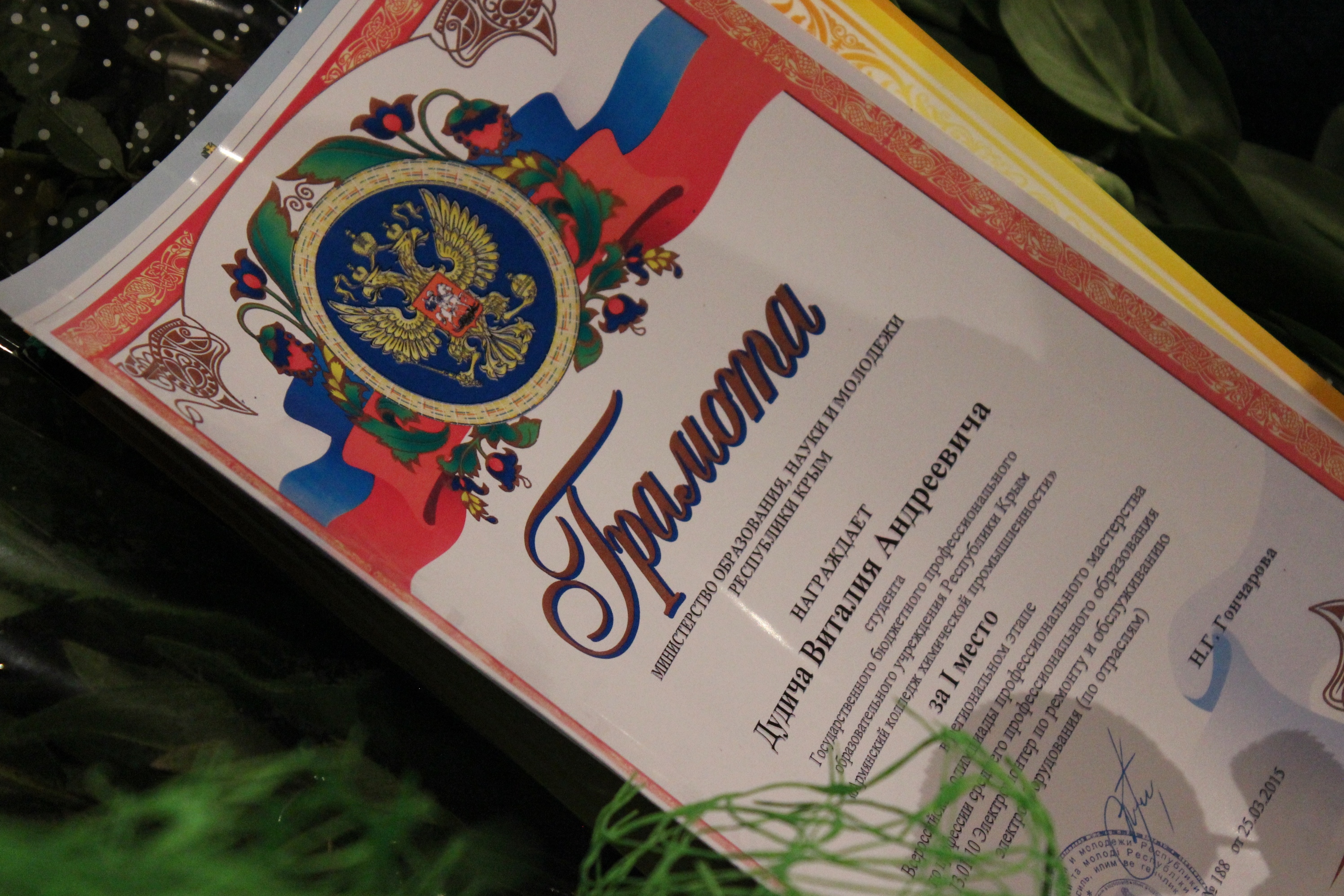 Замглавы администрации Армянска Василий Угольников на торжественной церемонии вручения документов об образовании поздравил выпускников колледжа химической промышленности с успешным окончанием учебы.